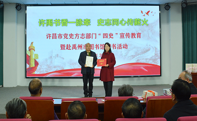 3月10日上午,中共许昌市委党史和地方史志研究室、中共禹州市委党史和地方史志研究室联合在禹州市图书馆开展“四史”宣传教育暨党史方志图书捐赠活动。