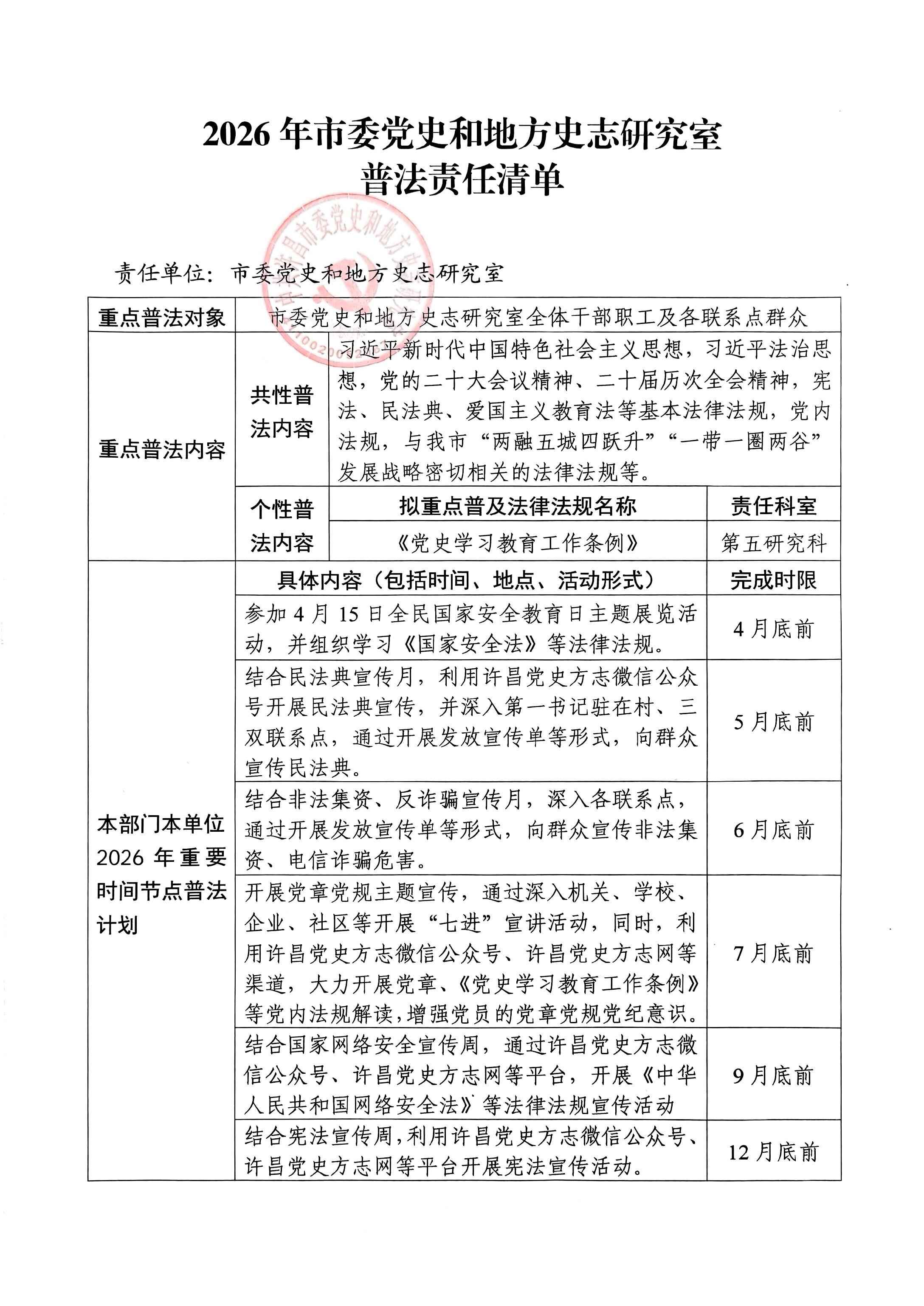 2026年市委党史和地方史志研究室 普法责任清单